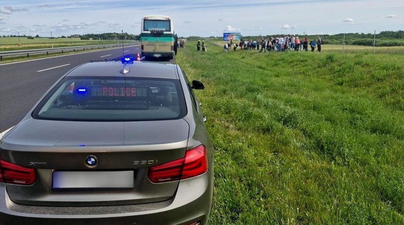 Autobus z dziećmi zepsuł się na autostradzie. Policjanci zareagowali wzorowo