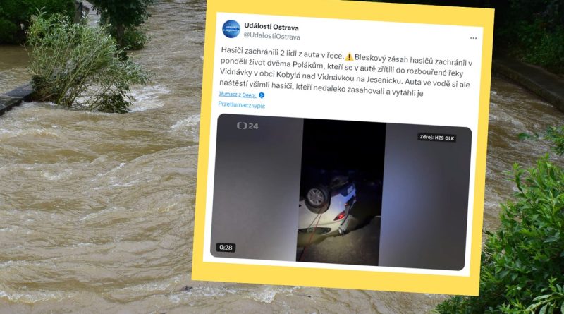 Czescy strażacy ruszyli na pomoc Polakom, którzy utknęli w samochodzie w rwącej rzece w pobliżu polsko-czeskiej granicy. Szybka interwencja służb uratowała życie poszkodowanych. „Gdyby nie strażacy, oboje by utonęli” — przekazał David Smejkal, prezes Wodnego Ochotniczego Pogotowia Ratunkowego ČČK, cytowany przez serwis zpravy.kurzy.cz.