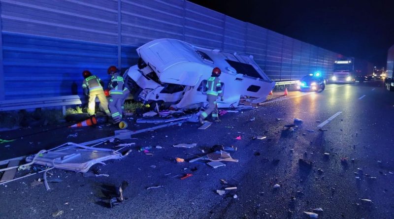 Tragiczny wypadek na autostradzie A2. Siła uderzenia wepchnęła kampera na bariery