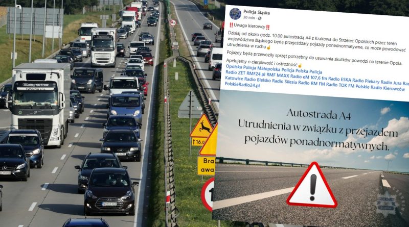 Kierowcy jadący w środę 18 września autostradą A4 na odcinku od Krakowa (woj. małopolskie) w kierunku Strzelec Opolskich (woj. opolskie) mogą napotkać utrudnienia. Prawdopodobnie potrwają one wiele godzin. Powodem jest przejazd transportu z ciężkim sprzętem potrzebnym do usuwania skutków powodzi.